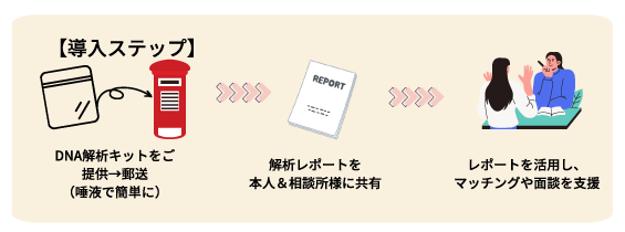 私たちの提供する遺伝子検査結果の分析は婚活用に最適化されており今までにないアプローチ方法となります。